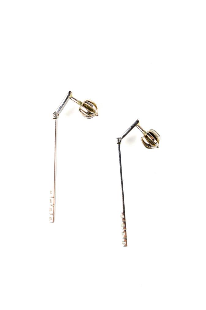 Zlaté náušnice s diamanty, šroubek. Ryzost 585/1000, punc labuť, váha 2,15 g. Výška 33 mm, šířka 2 mm. Kameny jsou přírodní diamanty briliantového brusu, barva G, čistota SI 1, 8 ks celkem 0,114 ct.