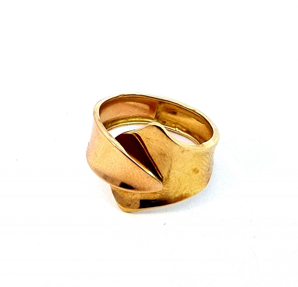 Zlatý prsten o ryzosti 750/1000, punc kohout. Velikost 52, váha 3,68 g, v nejširším bodě 18 mm.