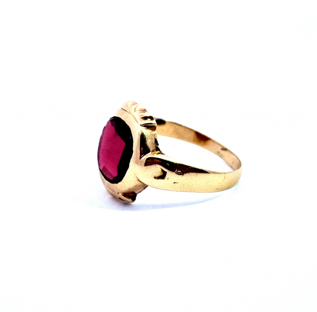Starožitný zlatý prsten s almandinem, vel. 60,5