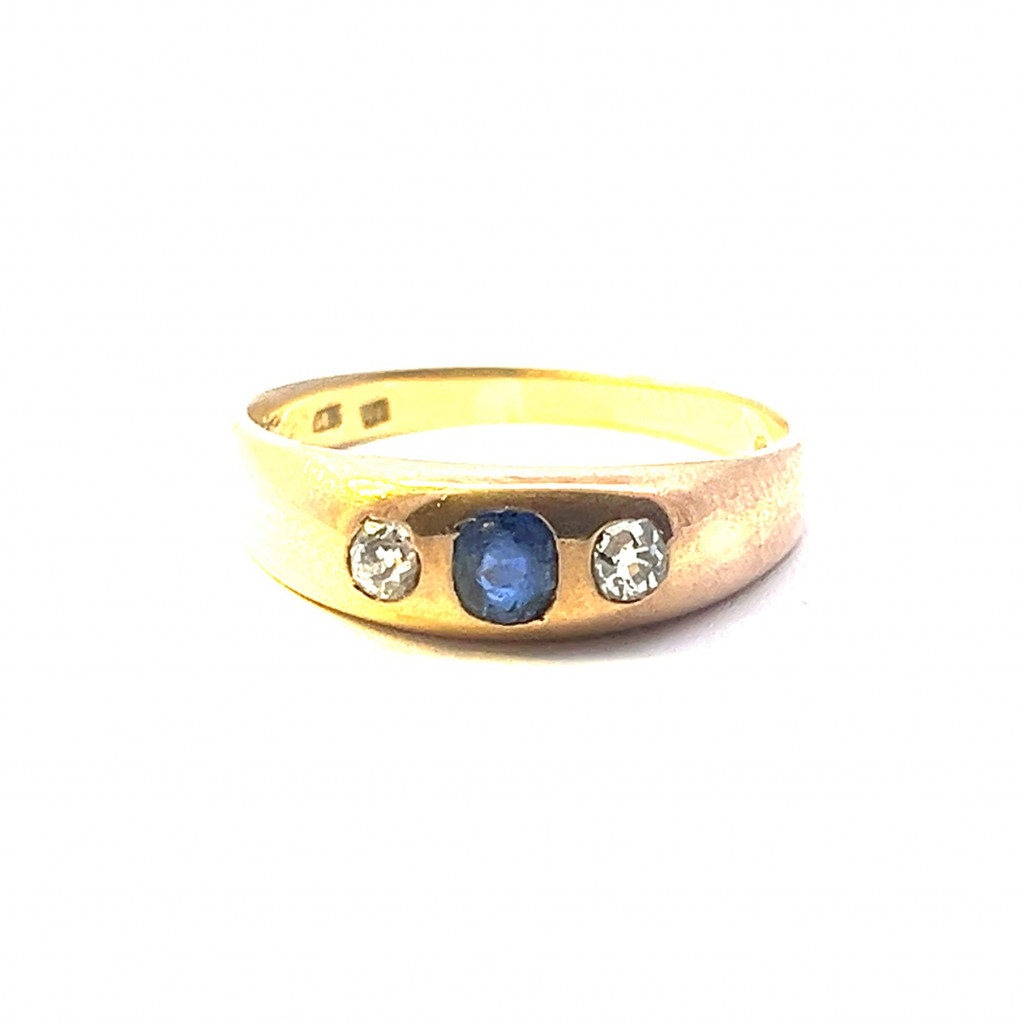 Starožitný zlatý prsten se safírem a brilianty, vel. 63